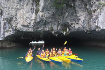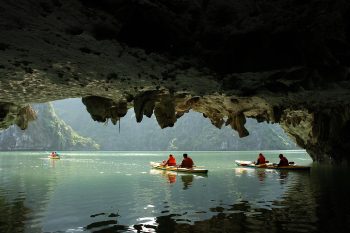 Kayak through Dark & Bright Caves, one of the most iconic spots of Lan Ha Bay. Paddle into hidden lagoons and enjoy peaceful waters surrounded by cliffs.