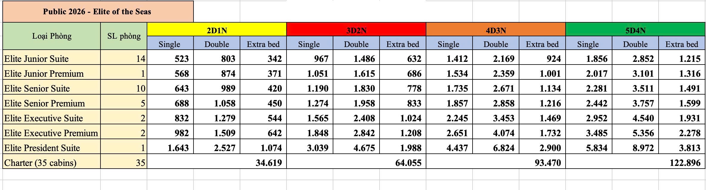 Elite of the Seas is designed based on the idea of contemporary, luxurious, quintessential style. She inherited the precious experience of her sister – Stellar of the Seas, to make us stand out and unique from the other one in Ha Long – Lan Ha Bay. With designed itineraries, the delicious and abundant menu, professional service, and well-trained staff, Elite of the Seas promises to bring customers a truly memorable experience.
