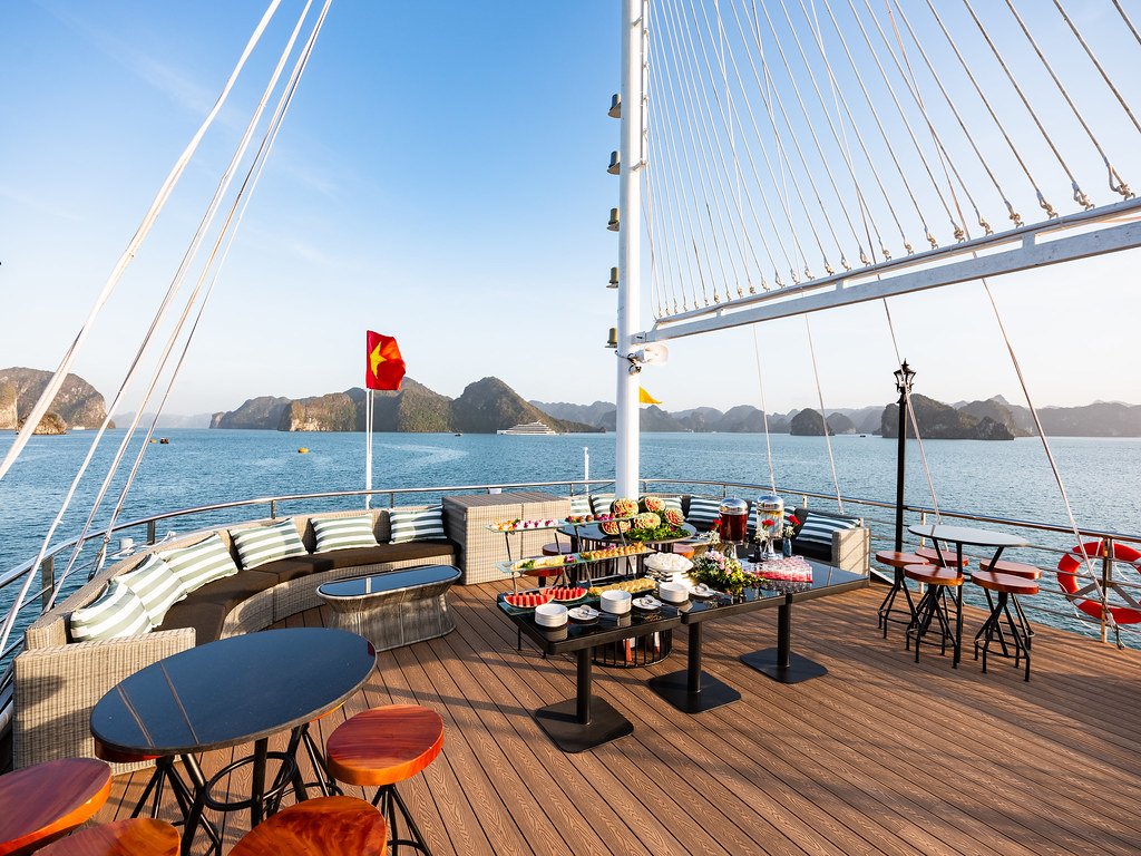 * Great chance to join in interesting activities on board like Outdoor Jacuzzi, sunset party, relax and admire the sunset at Halong bay.