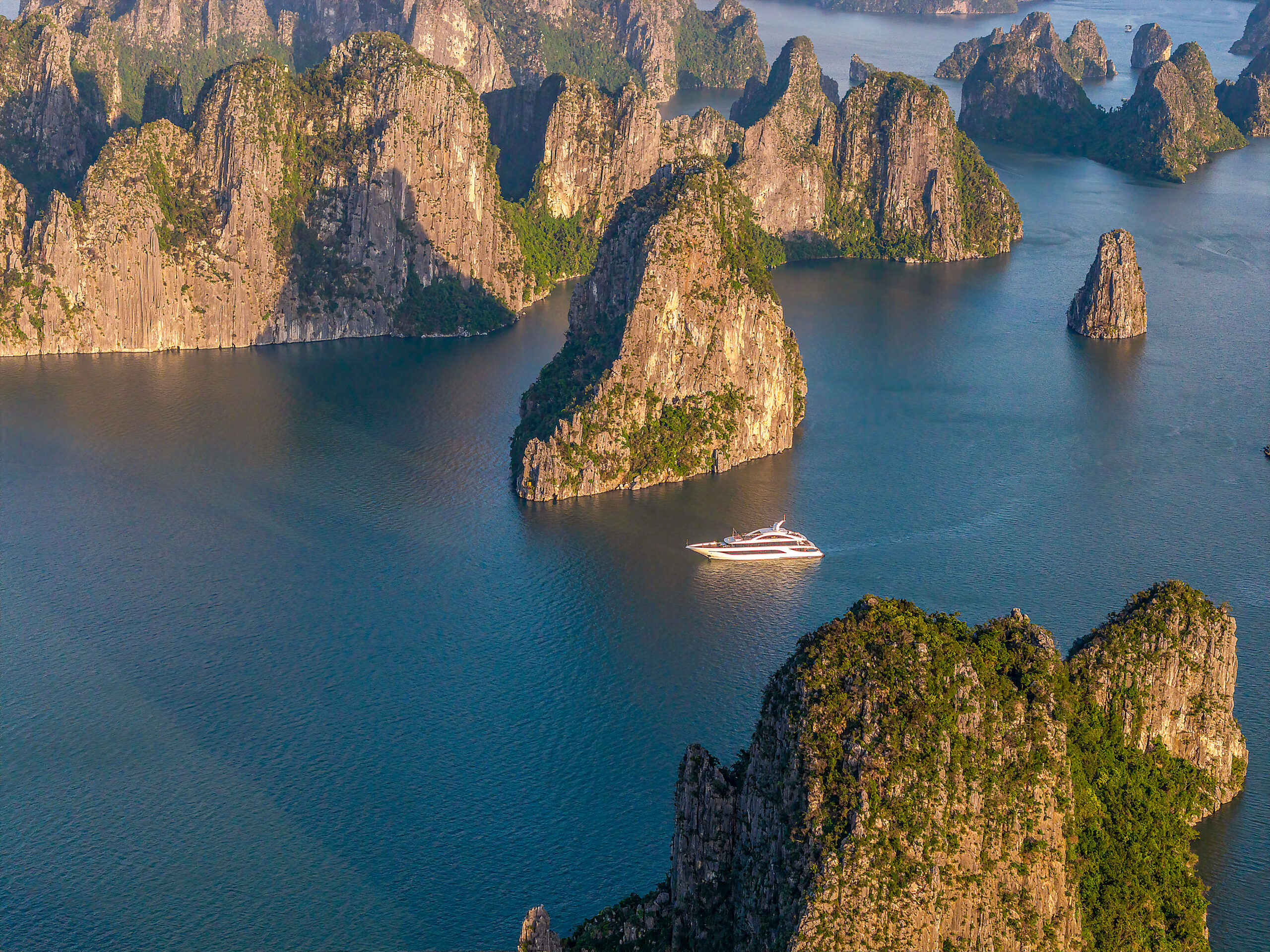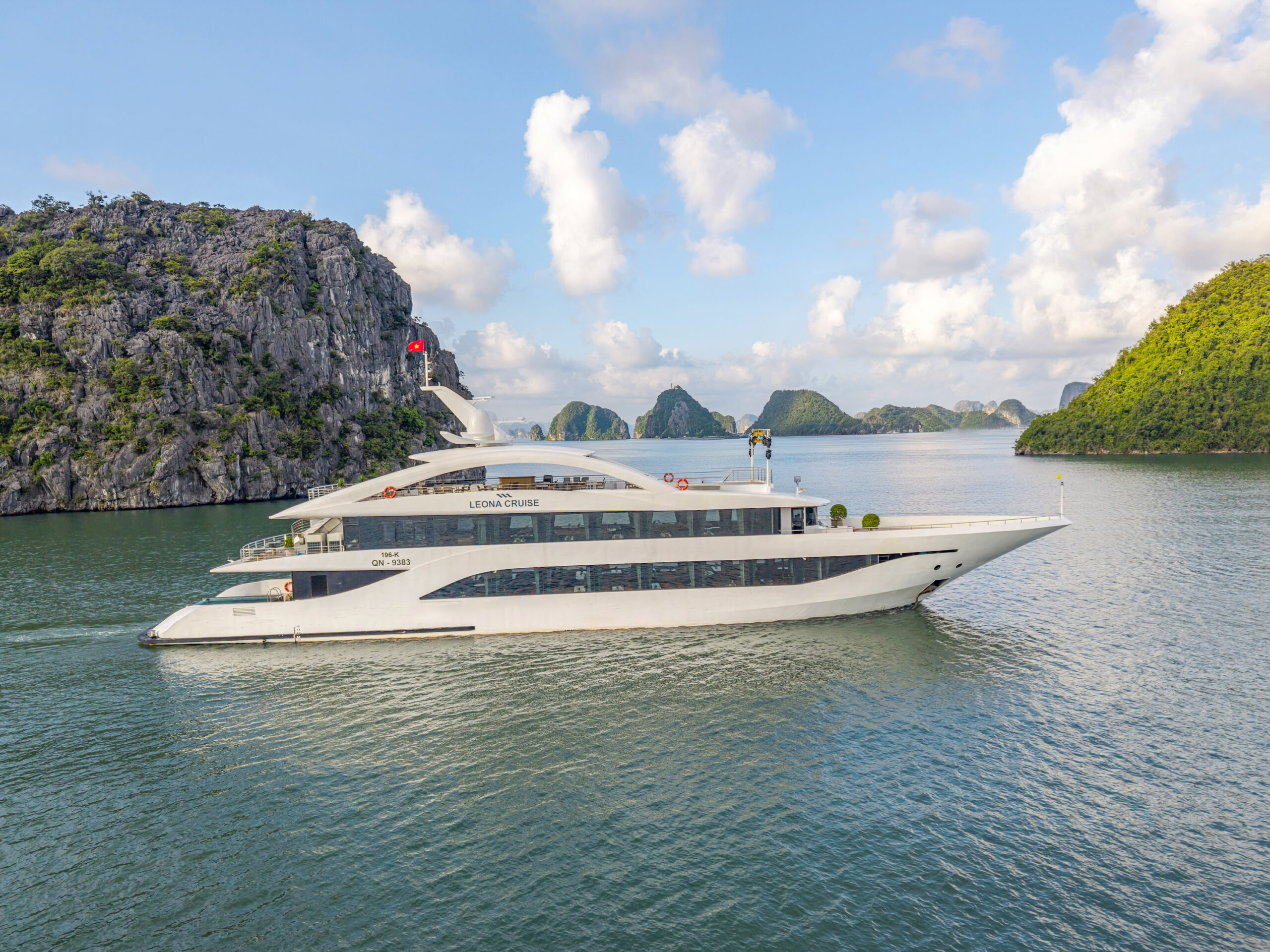 Leona Cruise Halong Bay luxury day cruise sailing through limestone karsts