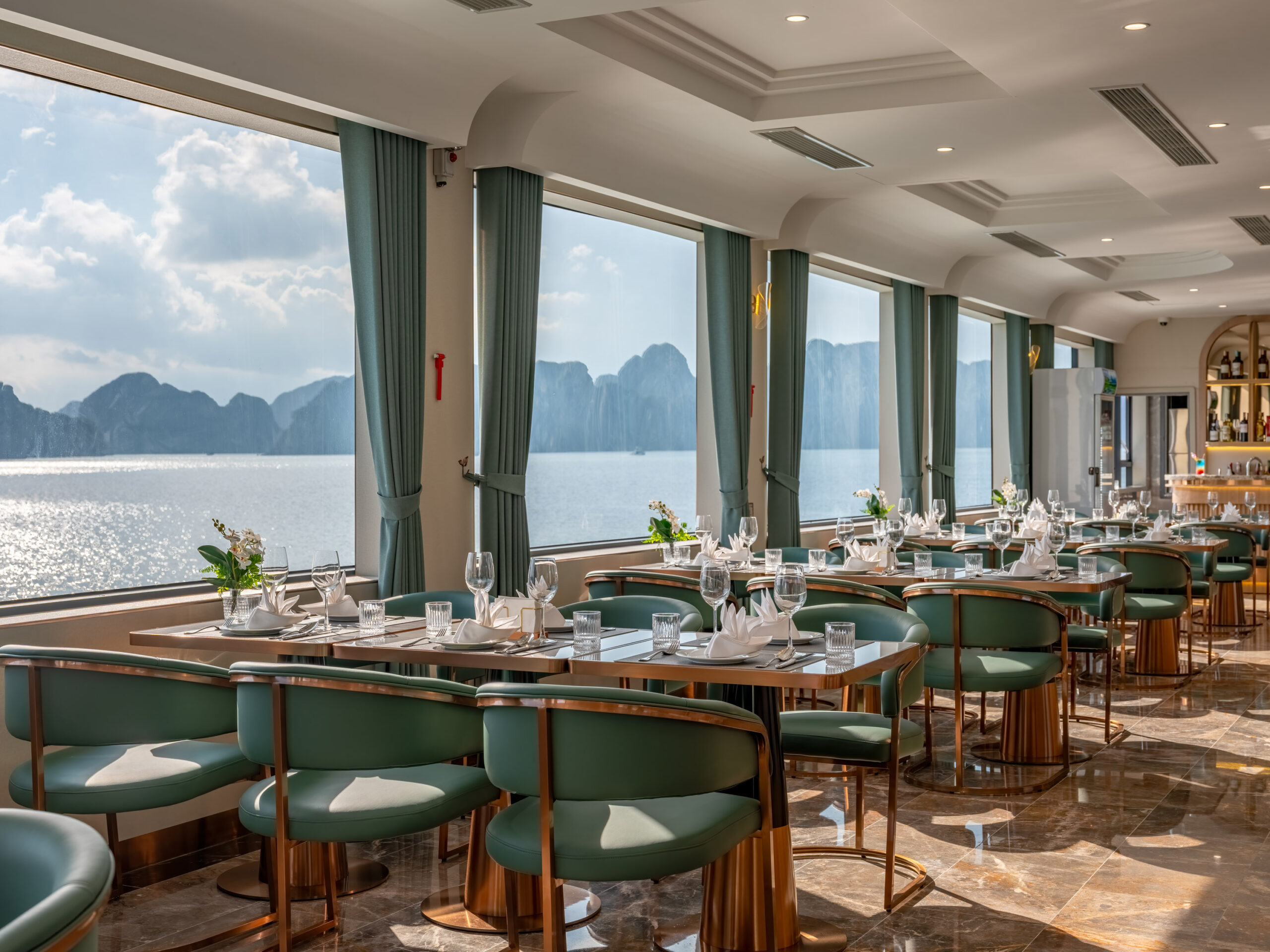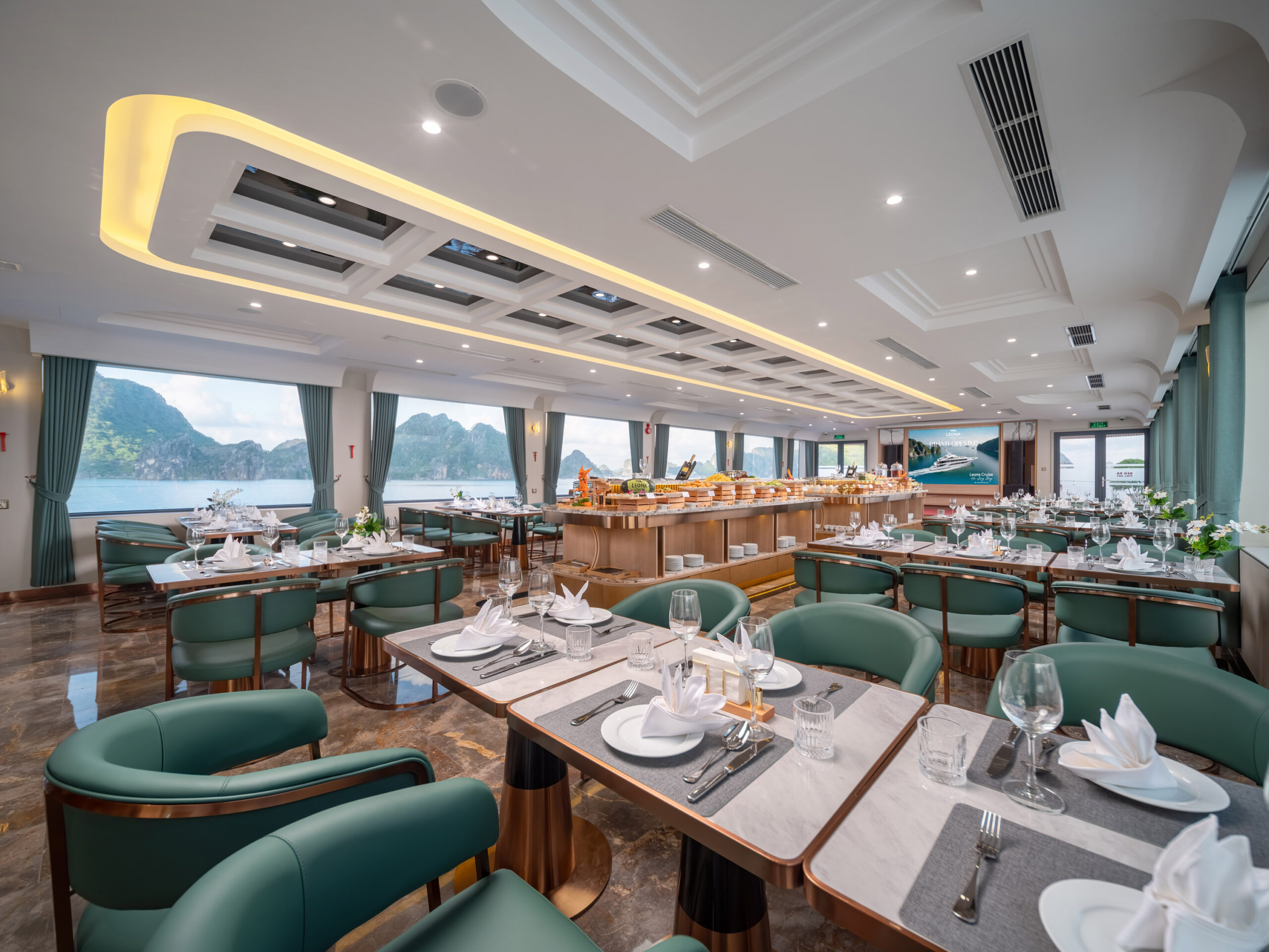 Fine dining restaurant on Leona Cruise Halong Bay serving gourmet cuisine
