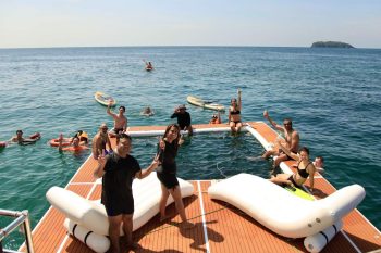 Swim, snorkel coral reefs, paddle SUP boards, fish, and enjoy fun activities on a floating sea platform.