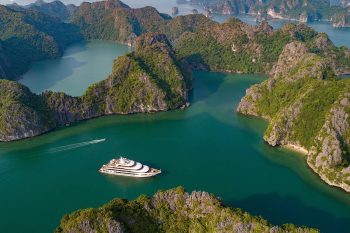 Scarlet Pearl Cruise sailing through limestone karsts of Halong Bay
