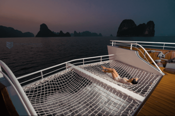 First of all, The Catamaran features a modern twin-hull design, providing excellent stability, spacious decks, and panoramic views of the bay. As the cruise glides through emerald waters and dramatic limestone karsts, guests can relax on the sundeck or lounge areas while fully enjoying the breathtaking natural landscape. In addition, the limited number of passengers ensures a private atmosphere and attentive service throughout the journey.